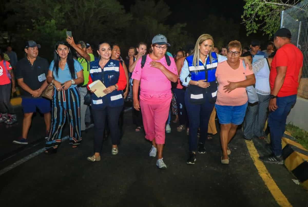 La presidenta municipal Lili Campos recorrió esta noche la recién construida Av. Diagonal 65, entre Colosio y CTM, que cuenta con ciclovía en ambos carriles, un cenote y árbol protegido en medio de una glorieta que abarca una parte de la vía de rodamiento.