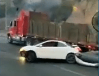 El conductor de un tráiler arrastra un vehículo particular, presuntamente con sus ocupantes, por casi medio kilómetro sin darse cuenta ...