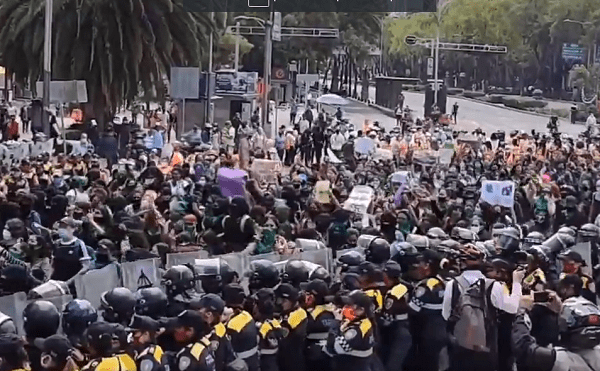En su intento de llegar al Zócalo capitalino, algunas de las feministas comenzaron a lanzar bombas molotov y otros objetos ...