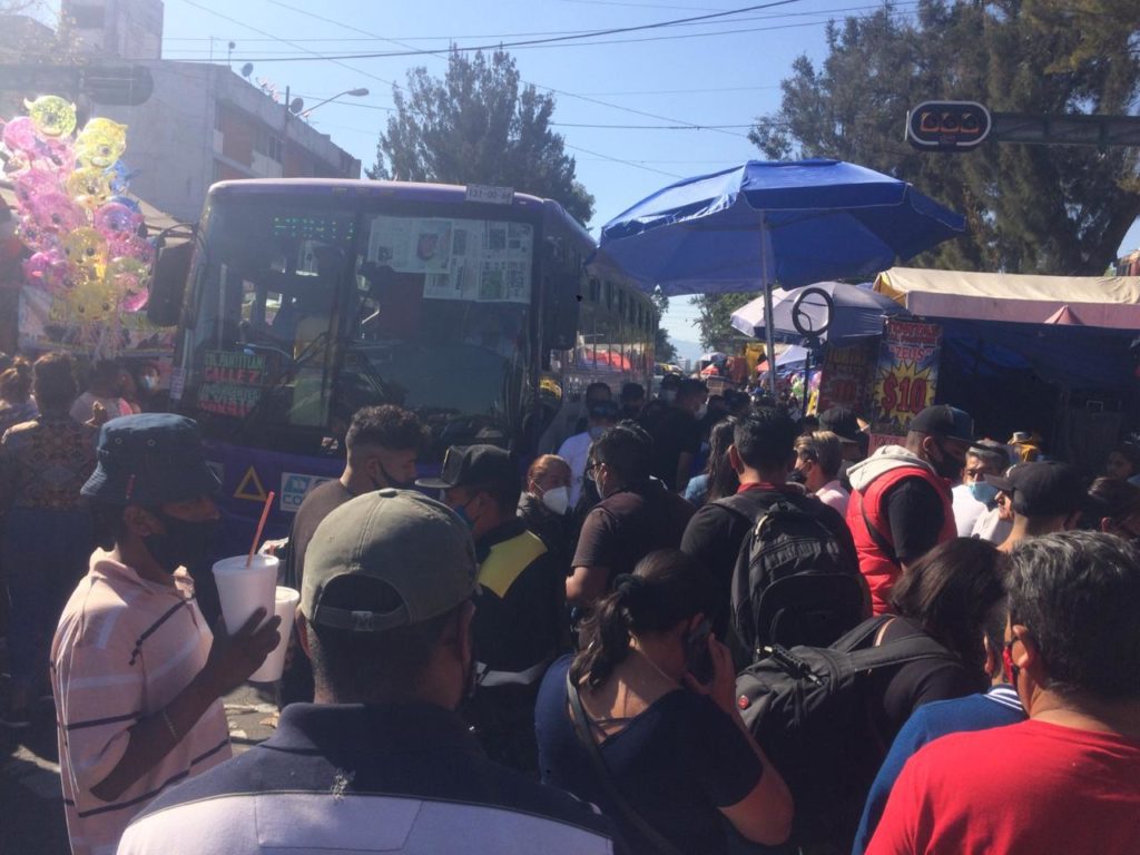 Irrespetando la sana distancia y con cubrebocas mal colocados, los capitalinos y oriundos del Estado de México, llegan a los comercios semifijos en búsqueda de los deseos expresados por los niños que esperan recibir su regalo el próximo 6 de enero.